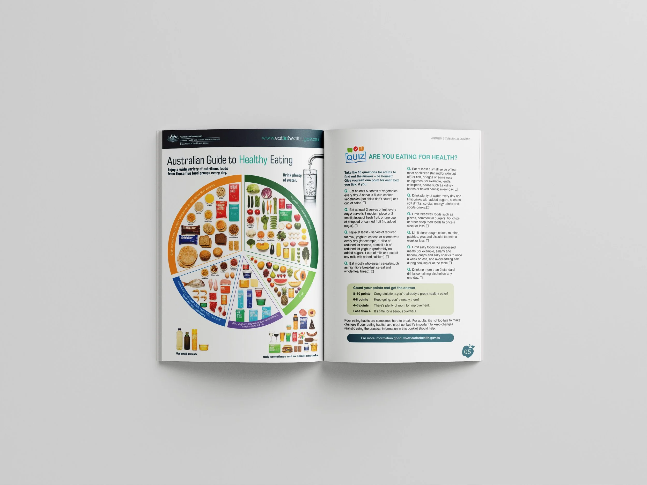 The National Department of Health, Disability and Aging asks my company to redesign and reedit the Eating for Health Australian Dietary Guidelines Summary and build a website to increase the readability and memorably communicate the content to help Australian people get the best healthy eating knowledge support and raise their awareness of it, especially those who have ADHD or dyslexia. I can download the original file from the website ‘eating for health’. All relevant information can be found on the website.